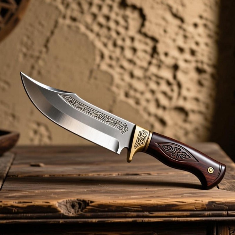 图案设计:刀柄图案需融合维吾尔族文化元素,如巴旦木纹、石榴纹等,或抽象化自然景观,体现地域特色。